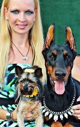 Keywords: blonde woman yorkie doberman love