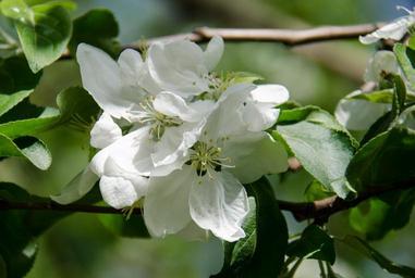 Keywords: bloom flowers apple flower apple tree tree branch spring leaves green leaves garden
