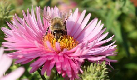 Keywords: blossom bloom bee wasp macro purple pollination close insect
