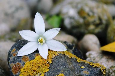 Keywords: blossom bloom blueme white background white flower nature white blossom plant spring close ground moss old weathered stone