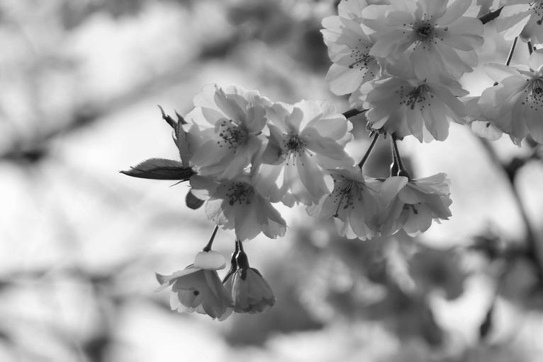 Keywords: blossom bloom bud pink cherry blossom nature spring flower plant aesthetic close shoots garden branch brown flora branches tree black and white