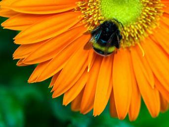 Keywords: blossom bloom nature hummel bee spring close orange insect bloom