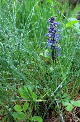 Keywords: blossom bloom purple grass drop of water drip close meadow