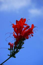 Keywords: blossom bloom red bush evergreen bush plant cape honeysuckle kapbignonie tecoma capensis tecomaria capensis bignoniaceae trumpet vine crop