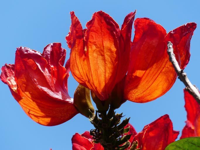 Keywords: blossom bloom red tulip tree bright african tulpenbaum spathodea campanulata bignoniaceae plants bignoniaceae bell shaped panicle sepals