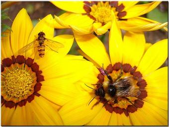 Keywords: blossom bloom yellow garden summer insect flower hummel hoverfly