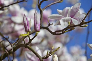 Keywords: blossom spring nature magnolia flower bud purple blue air
