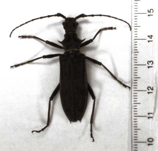 Keywords: Blosyropus spinosus2.jpg en Blosyropus spinosus Redtenbacher 1868 adult female with ruler for scale photo taken by me S E Thorpe 2013-06-20 NEW ZEALAND WO Maungatautari Mountain -38 02808 175 56976 South Cell Inside Cell Transect 2 Pitfall trap G 21 Jan-24 Feb 2013 C H Watts Blosyropus spinosus |