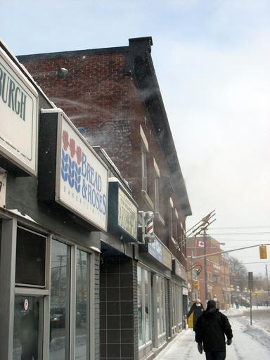 Keywords: Blowing snow.jpg Snow blowing from a roof in New Edinburgh Ottawa 2007-02-15 own assumed Miguel Andrade Rockcliffe Park Ontario Snow
