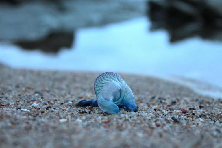Keywords: blue bottle jellyfish animal nature invertebrate beach