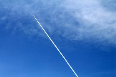 Keywords: blue cloud wake plane white air high clouds spring