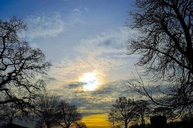 Keywords: blue clouds nature sky tree landscape sunset red brunch cloud