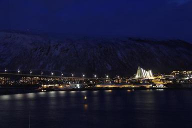 Keywords: blue dark night view romantic beautiful amazing cathedral norwegian visit snow winter arctic journey the arctic circle tromso norway scandinavia europe nature nordic scenery mountain water sea north coast