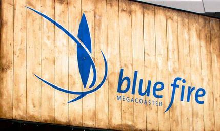 Keywords: Blue Fire 2009.JPG en The logo of Blue Fire Megacoaster during the 2009 season fr Le logo du Blue Fire Megacoaster pendant la saison 2009 own Sodixian 2010-04-11 48 15 44 72 N 7 43 8 53 E region DE_heading SSW Europa-Park Rust Germany FoP-Germany Logos of roller coasters Blue fire Amusement parks in 2009