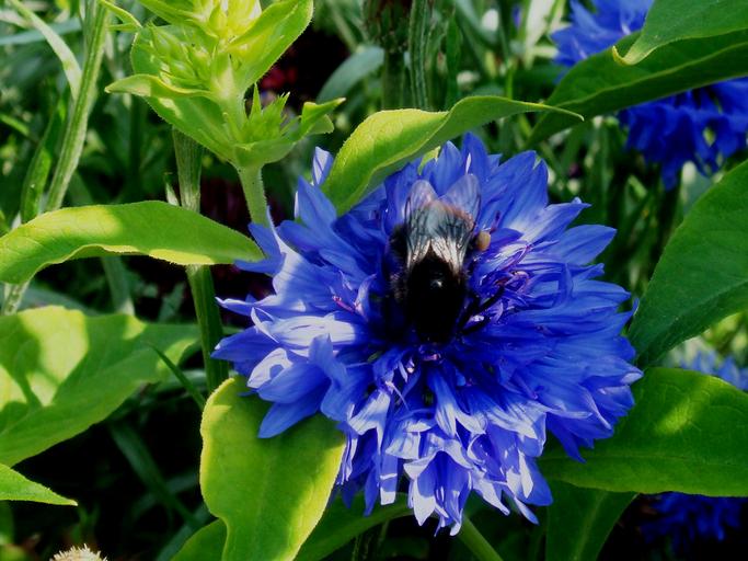 Keywords: blue flower bumblebee nature garden summer garden plant cornflowers