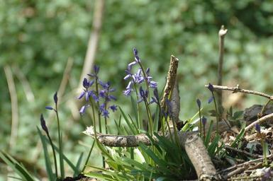 Keywords: blue flowers bluebell harebell wild blossoms blooms blooming greenery green leaves leafy green background woods plants flora