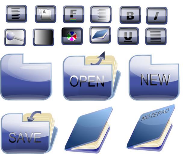 Keywords: blue folder glossy icons editor rte rich text editor open save new bold italic font style search