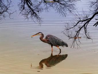 Keywords: blue heron water bird bird feathered sunset branches water vancouver stanley park british columbia canada animal scenery catching fish