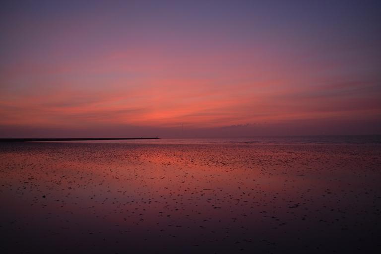 Keywords: blue hour north sea sunset wadden sea sea sky beach coast mirroring watts abendstimmung