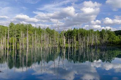 Keywords: blue pond blue pond hokkaido biei wood sky