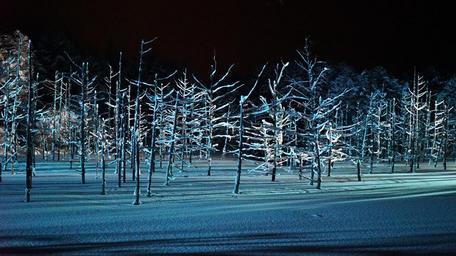 Keywords: blue pond light up biei blue wood forest blue light winter