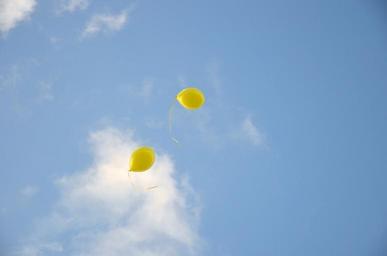 Keywords: blue sky balloons two air colorful sky yellow yellow balloon