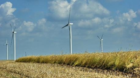 Keywords: blue sky clouds windmill windmill farm generator turbine power rural field landscape mill energy european ecology electricity