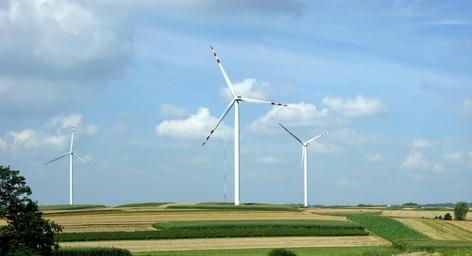 Keywords: blue sky clouds windmill windmill farm landscape nature power turbine generator electricity alternative