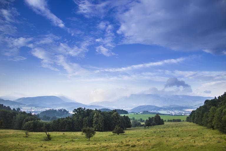 Keywords: blue sky landscape meadow mountains beskydy nature