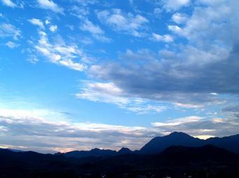 Keywords: blue sky mountains white clouds cloudy peaks high hills hillside landscape day colorful bright scenic scenery fluffy patterns cloudscape atmosphere