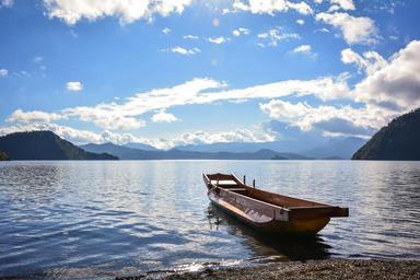 Keywords: blue sky white cloud mountain the scenery in yunnan province water ship