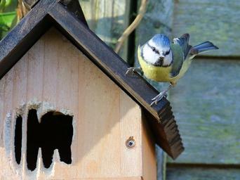 Keywords: blue tit nesting nest box female bird tit nest blue wildlife spring box bluetit songbird adult uk bird watching garden
