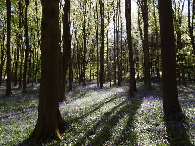 Keywords: bluebell wood flowers springtime idyllic bloom bluebell forest rural countryside purple carpet nature blue green spring season floral colorful woodland wildflower tree wood