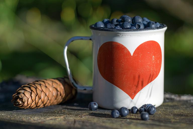 Keywords: blueberry cone mug heart berry summer nature afternoon collection forest fir cone food enamel mug