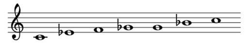 | Keywords: Bluesscalec.png en Bluesscale in C <pre><nowiki> LilyPond Source \relative c' \override Staff TimeSignature 'stencil f \override Staff BarLine 'break-visibility ' f f f c1 ees1 f1 ges1 g1 bes1 c1 </nowiki></pre> own Das Ed Blues musical scales |