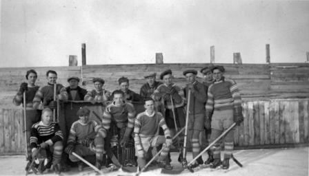 Keywords: hockey alberta ice hockey icehockey blackandwhite monochrome black and white 1940, A14894. 1940, A14894.