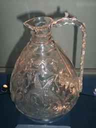 | Keywords: BLW Rock Crystal Ewer (3).jpg Rock Crystal Ewer about 1000-50 <br /> Egypt probably Cairo <br /> Carved rock crystal <br /> <br /> This rare ewer was carved from a single piece of extremely hard transparent stone known as rock crystal On either side a bird of prey attacks an antelope The image may have symbolised the ruler's ability to overcome his enemies <br /> <br /> The plain surfaces such as the band around the neck were probably once covered with mounts of gold and other materials These would have contrasted with the clear crystal which one writer of the time described as combining the properties of air and water Adam Morgan Victoria and Albert Museum http //www vam ac uk/ 7904-1862 http //collections vam ac uk/item/O69906/ewer/ PD Pitchers Rock crystal objects Fatimid Rock Crystal Ewer in Victoria and Albert Museum London |