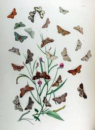 | Keywords: BMAT.II-73.jpg en Acidalia osseata; Acidalia osseata var margine-punctata; Acidalia virgularis; Acidalia subsericeata; Acidalia aversata; Acidalia remutata; Acidalia remutata var inornata; Acidalia fumata; Acidalia lactata; Acidalia lactata var flos-lactata; Poecilophasia marginata; Chlorissa viridata; Chlorissa thymiaria; Chlorissa putataria; Timandra imitaria; Timandra variegata; Timandra emutaria; Macaria notata; Macaria alternata; Macaria liturata; Ania emarginata; Eunomos flexula; Macaria limbata; Macaria praeatomata; Macaria subrufata; Macaria unipunctata Plate 73 1845 British Moths and their Transformations Volume II 1845 http //caliban mpiz-koeln mpg de/westwood/moths2/high/IMG_3922 html Henry Noel Humphreys and John Obadiah Westwood PD-old Uploaded with UploadWizard British Moths and their Transformations Volume II |