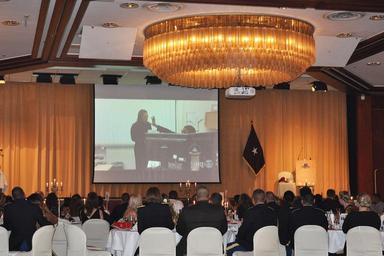 | Keywords: u.s. army medical department activity bavaria usarmymedicaldepartmentactivitybavaria bmeddac meddac bavaria meddacbavaria germany u.s. army usarmy col. david richardson coldavidrichardson command sgt. major christopher earle commandsgtmajorchristopherearle meddac regional health command europe regionalhealthcommandeurope rhc-e rhce brigadier dennis lemaster brigadierdennislemaster ansbach clinic ansbachclinic grafenwoehr health clinic grafenwoehrhealthclinic stuttgart health clinic stuttgarthealthclinic vilseck health clinic vilseckhealthclinic health resiliency physical fitness physicalfitness mental health mentalhealth healing patient care patientcare patient satisfaction patientsatisfaction patient safety patientsafety soldier readiness soldierreadiness soldier fitness soldierfitness preventive medicine preventivemedicine army triad armytriad 2016 winter ball winterball military tradition militarytradition auditorium hall indoor NUREMBERG, Germany -- The 2016 annual U.S. Army Medical Department Activity Bavaria (BMEDDAC) Holiday Ball was held Dec 9. Staff members from BMEDDAC clinics in Ansbach, Hohenfels, Grafenwoehr, Stuttgart and Vilseck joined event organizers from BMEDDAC headquarters for an evening of holiday cheer and friendship, entertainment and dining. The event was attended by more than 300 BMEDDAC staff members, friends and family as well as German dignitaries and off-post local national healthcare representatives. The annual event includes the observance and celebration of time-honored military traditions, honoring fallen comrades, toasts and remembrance of fellow Soldiers serving overseas, as well as promoting pride and cohesion across the organization. The evening is also a unique opportunity for the greater BMEDDAC family - spread out over two German states and in 5 separate locations - to come together and socialize. Brigadier General (Ret.) Rhonda Cornum, PhD, MD, and who previously served as U.S. Army Assistant Surgeon General for Force Projection, was the guest of honor and keynote speaker at this year's event, which was held in the medieval city of Nuremberg. To learn more about the people and facilities of the U.S. Army Medical Department Activity Bavaria (BMEDDAC) and the clinics they support in Ansbach, Grafenwoehr, Hohenfels, Stuttgart and Vilseck visit the BMEDDAC website at rhce.amedd.army.mil/bavaria Photo by Michael Beaton, U.S. Army Medical Department Activity Bavaria Public Affairs (Released). NUREMBERG, Germany -- The 2016 annual U.S. Army Medical Department Activity Bavaria (BMEDDAC) Holiday Ball was held Dec 9. Staff members from BMEDDAC clinics in Ansbach, Hohenfels, Grafenwoehr, Stuttgart and Vilseck joined event organizers from BMEDDAC headquarters for an evening of holiday cheer and friendship, entertainment and dining. The event was attended by more than 300 BMEDDAC staff members, friends and family as well as German dignitaries and off-post local national healthcare representatives. The annual event includes the observance and celebration of time-honored military traditions, honoring fallen comrades, toasts and remembrance of fellow Soldiers serving overseas, as well as promoting pride and cohesion across the organization. The evening is also a unique opportunity for the greater BMEDDAC family - spread out over two German states and in 5 separate locations - to come together and socialize. Brigadier General (Ret.) Rhonda Cornum, PhD, MD, and who previously served as U.S. Army Assistant Surgeon General for Force Projection, was the guest of honor and keynote speaker at this year's event, which was held in the medieval city of Nuremberg. To learn more about the people and facilities of the U.S. Army Medical Department Activity Bavaria (BMEDDAC) and the clinics they support in Ansbach, Grafenwoehr, Hohenfels, Stuttgart and Vilseck visit the BMEDDAC website at rhce.amedd.army.mil/bavaria Photo by Michael Beaton, U.S. Army Medical Department Activity Bavaria Public Affairs (Released). |