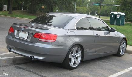 Keywords: BMW-335i-convertible-rear.jpg BMW 335i photographed in College Park Maryland USA BMW E93 Automobiles facing right Own 9/22/07 IFCAR All Rights Released Silver coupes