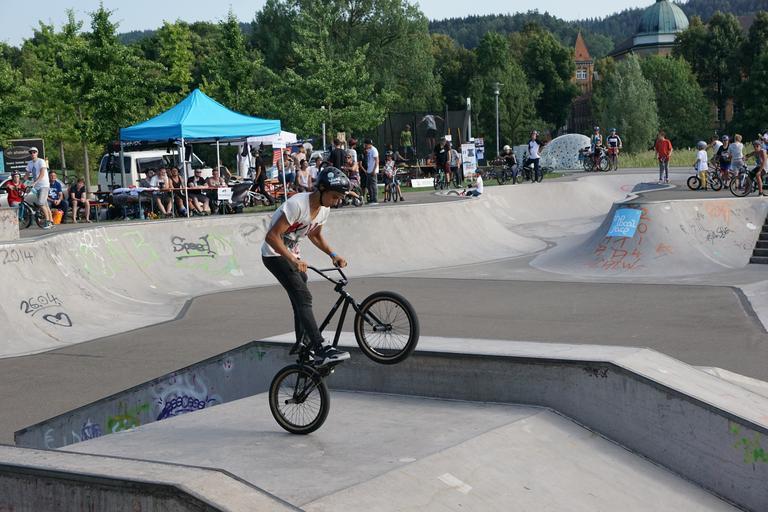 Keywords: bmx bike drive jump fun joy extremely boy two wheeled vehicle cycle wheel sport benefit from kurzweil frohsinn competition tuttlingen germany