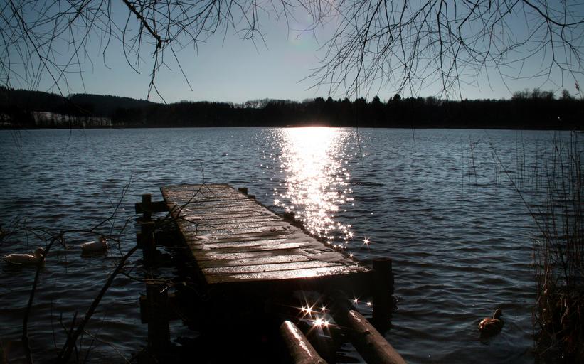 Keywords: boardwalk sunset lake burgäschisee water dock waters jetty spring duck mood silent idyllic sun web quiet bank landscape