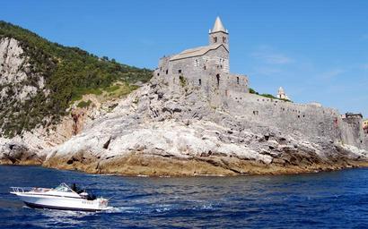 Keywords: boat castle cliff sea church costa rock porto venere liguria italy rocks speedboat