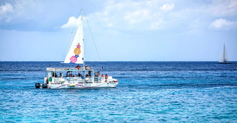 Keywords: boat cozumel sea water mexico caribbean travel blue vacation sky clouds nature outdoors sunlight people blue sky summer tropical blue sky clouds