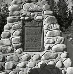 | Keywords: architecture stonework texture blackandwhite surreal pattern text black and white Government of Canada historic site cairn at Boat Encampment, BC along the Big Bend Highway (old Hwy. 1; 1940-1962). The site was designated in 1943. The site was flooded by the Mica Dam hydroelectric development of the Columbia River in 1973, and an historical marker now rests on a point in the Sprague Bay Recreation Site. Photograph taken September 6, 1953. [Revelstoke Museum and Archives; Earle Dickey, photographer] Text on plaque: "Erected by the Government of Canada Boat Encampment A port of transhipment in fur-trading days. Here boats from Fort Vancouver (Now Vancouver, Washington), On the lower Columbia, waited for pack trains coming over the mountains from Jasper House. First visited by David Thompson in 1811, this point was for almost half a century a meeting place for the fur brigades of the North West Company and later of the Hudson's Bay Company. By-passed by the railways this historic spot was made accessible to visitors by the completion of the Big Bend Highway in June, 1940. Historic Sites and Monuments Board of Canada" Government of Canada historic site cairn at Boat Encampment, BC along the Big Bend Highway (old Hwy. 1; 1940-1962). The site was designated in 1943. The site was flooded by the Mica Dam hydroelectric development of the Columbia River in 1973, and an historical marker now rests on a point in the Sprague Bay Recreation Site. Photograph taken September 6, 1953. [Revelstoke Museum and Archives; Earle Dickey, photographer] Text on plaque: "Erected by the Government of Canada Boat Encampment A port of transhipment in fur-trading days. Here boats from Fort Vancouver (Now Vancouver, Washington), On the lower Columbia, waited for pack trains coming over the mountains from Jasper House. First visited by David Thompson in 1811, this point was for almost half a century a meeting place for the fur brigades of the North West Company and later of the Hudson's Bay Company. By-passed by the railways this historic spot was made accessible to visitors by the completion of the Big Bend Highway in June, 1940. Historic Sites and Monuments Board of Canada" |