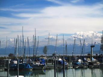 Keywords: boat harbour water sky clouds mood romanshorn lake constance switzerland