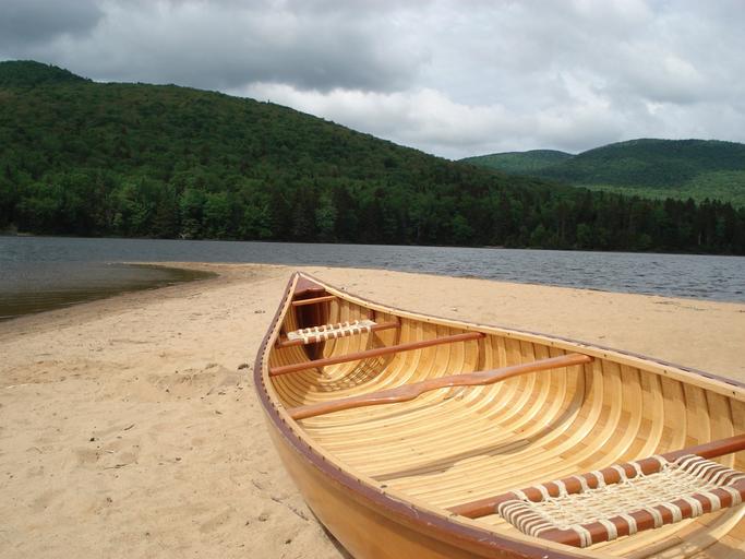 Keywords: boat lake river recreation outdoor boating shore cloudy sky relax wilderness canoe calm