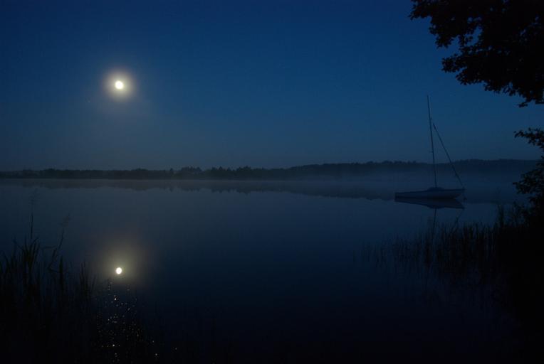 Keywords: boat moon night poland nature quiet landscape sky the fullness of view scenery