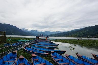 Keywords: boat nepal pokhara travel nature landscape phewa himalaya hill scene tourism calm water