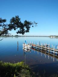 Keywords: boat reflection jetty pier metung water lake shrubbery blue boat reflection jetty pier metung water lake shrubbery blue